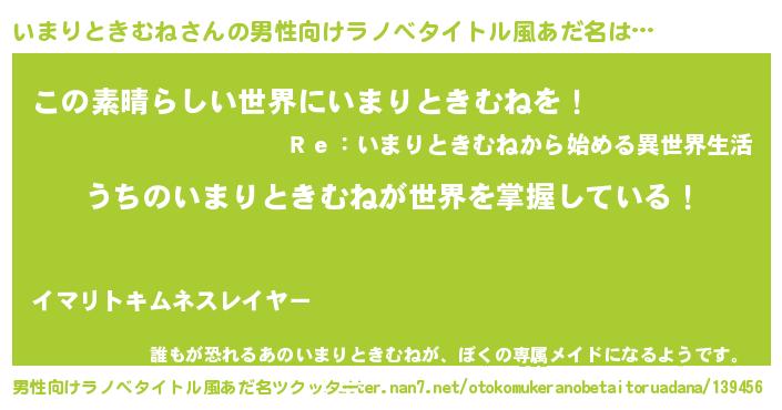 | ヘコむあだ名 | 『いまりときむね(震え声)』『いまにー』 |