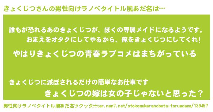 | 女子向けラノベタイトル風あだ名 | 『きょくじつの雑貨屋さん』 |