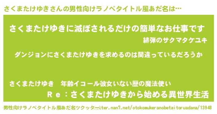 | 胡散臭い通販商品みたいなあだ名 | 『信頼と実績のネックレス…その名も「さくまたけゆき」』 |