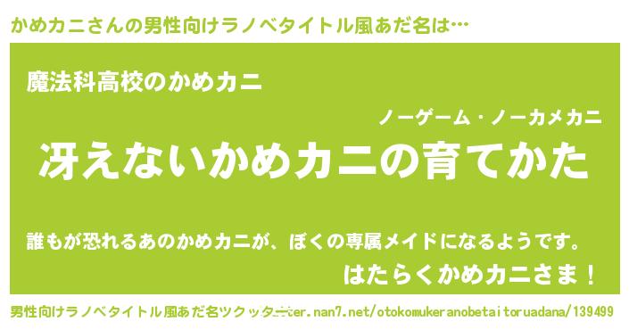 | 意味不明あだ名 | 『自称かめカニ』『永久保存かめカニ』 |
