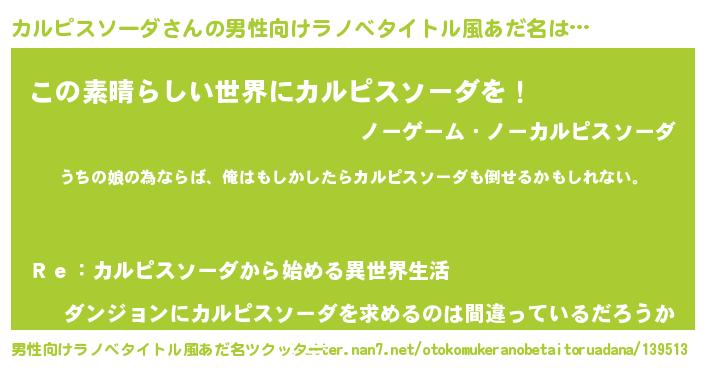 | ファンタジー風あだ名 | 『エターナルカルピスソーダー』 |