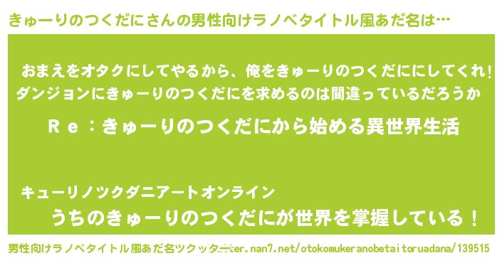 | 女子向けラノベタイトル風あだ名 | 『きゅーりのつくだにストレイドッグス』 |