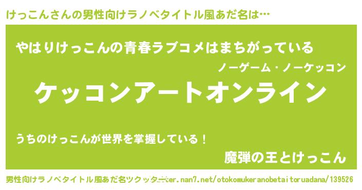 | ヒーロー風カッコイイあだ名 | 『スーパーケッコン』『仮面ケッダー』 |