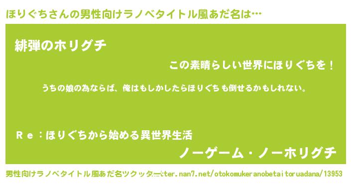 | 女子向けラノベタイトル風あだ名 | 『ほりぐちの婚約者』『闇のほりぐち』 |