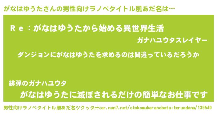 | 女子向けラノベタイトル風あだ名 | 『がなはゆうたは平凡を望む』 |
