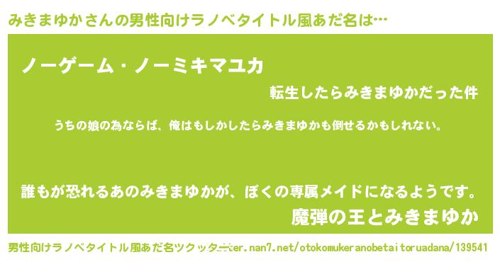 | 胡散臭い通販商品みたいなあだ名 | 『世界が平和になる高級そうな壺…その名も「みきまゆか」』 |