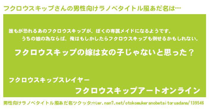 | ヒーロー風カッコイイあだ名 | 『天弓騎士フク』『ネオフクロウスキップ』 |