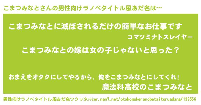 | 女子向けラノベタイトル風あだ名 | 『こまつみなとの卵を拾いまして』 |