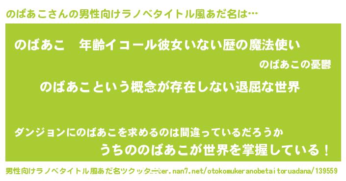 のばあこさんの男性向けラノベタイトル風あだ名をツクッター!