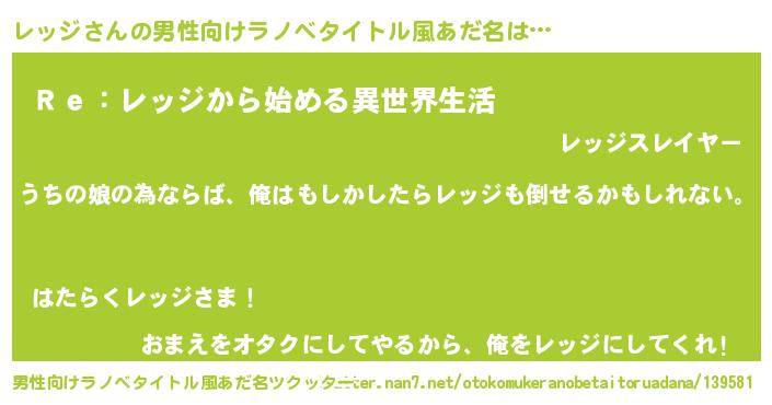 | 意味不明あだ名 | 『レッジフォーエバー』『自称レッジ』 |
