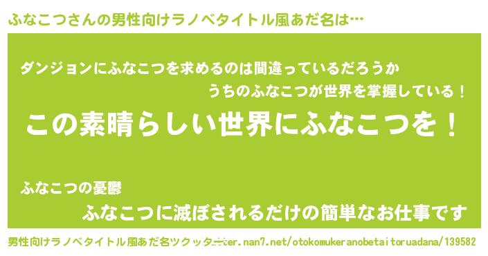 | 意味不明あだ名 | 『住所不定無職ふなこつ(41歳)』 |