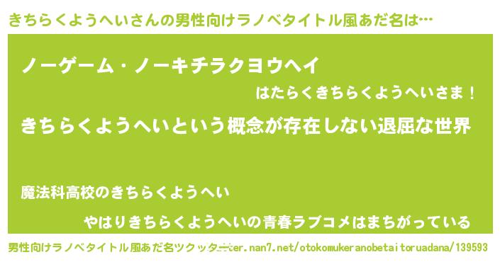 きちらくようへいさんの男性向けラノベタイトル風あだ名をツクッター!