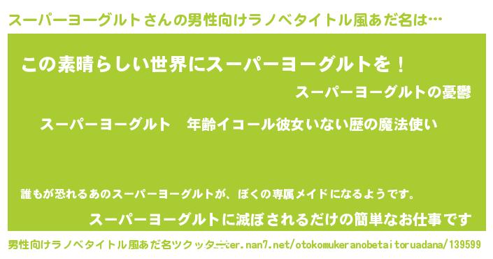 | 意味不明あだ名 | 『ヨモギ科スーパーヨーグルト属』 |