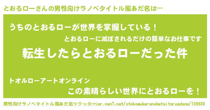 | 女子向けラノベタイトル風あだ名 | 『とおるローの玉の輿計画!』 |