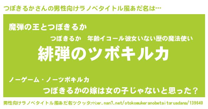 | 意味不明あだ名 | 『住所不定無職つぼきるか(39歳)』 |