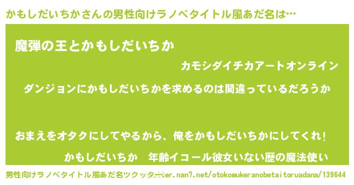 | 女子向けラノベタイトル風あだ名 | 『かもしだいちかは平凡を望む』 |