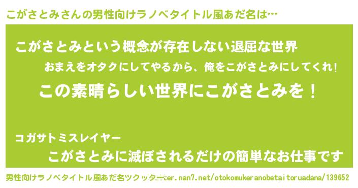 | 意味不明あだ名 | 『住所不定無職こがさとみ(13歳)』 |
