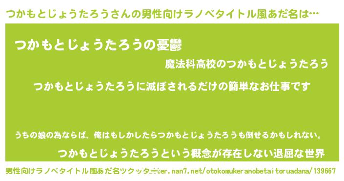 | 女子向けラノベタイトル風あだ名 | 『横柄つかもとじょうたろうと宰相陛下』 |