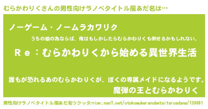 | 女子向けラノベタイトル風あだ名 | 『むらかわりくストレイドッグス』 |