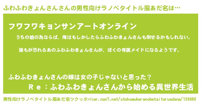 | 胡散臭い通販商品みたいなあだ名 | 『来世でも幸せになれる水素水…その名も「ふわふわきょんさん」』 |