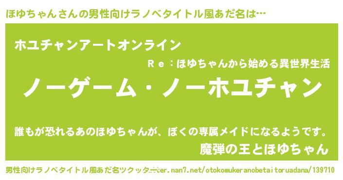 | 女子向けラノベタイトル風あだ名 | 『死神ほゆちゃんの再婚』 |