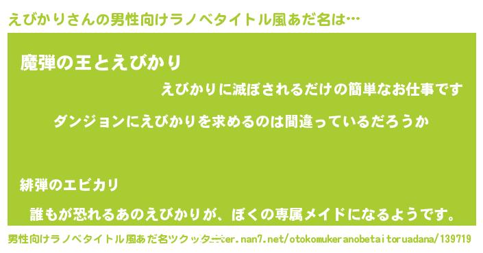 | 女子向けラノベタイトル風あだ名 | 『えびかりの卵を拾いまして』 |