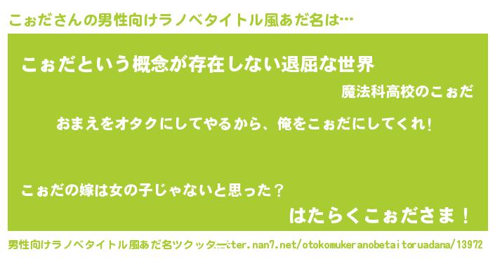 | 女子向けラノベタイトル風あだ名 | 『こぉだ夫妻のなれそめ』 |