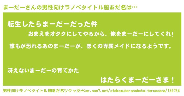 | 女子向けラノベタイトル風あだ名 | 『異世界でカフェまーだーを開店しました。』 |