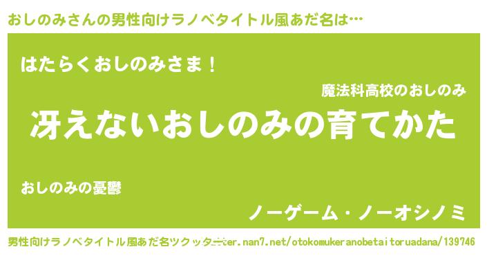 | ヒーロー風カッコイイあだ名 | 『慈愛の使者おしのみ』『仮面オシダー』 |