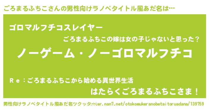 | 女子向けラノベタイトル風あだ名 | 『死神ごろまるふちこの再婚』 |