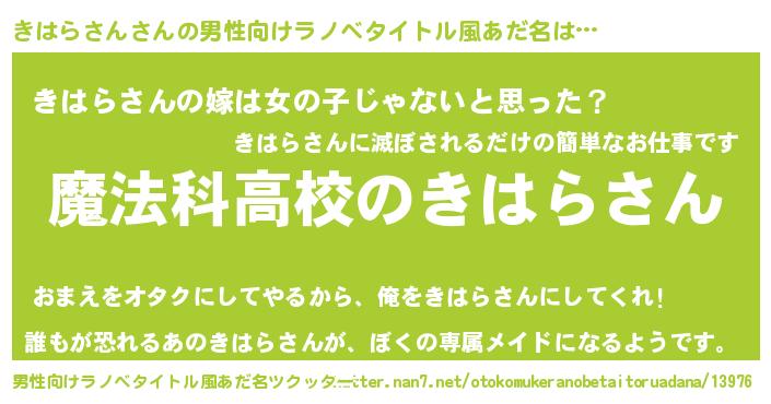 | ヒーロー風カッコイイあだ名 | 『超時空戦士キハラサン』『魔戒騎士キハ』 |