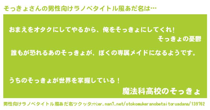 | 女子向けラノベタイトル風あだ名 | 『異世界でカフェそっきょを開店しました。』 |