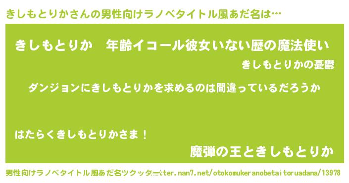 | 女子向けラノベタイトル風あだ名 | 『きしもとりかの卵を拾いまして』 |