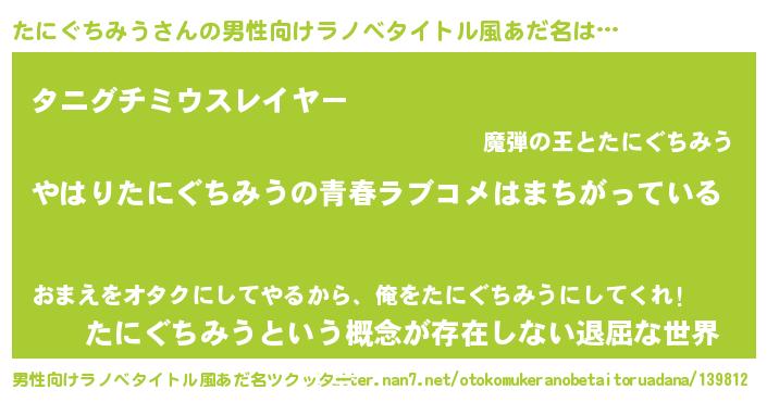 | 女子向けラノベタイトル風あだ名 | 『たにぐちみうの雑貨屋さん』 |