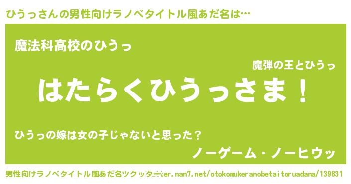 | 胡散臭い通販商品みたいなあだ名 | 『ガンによく効く冬虫夏草…その名も「ひうっ」』 |