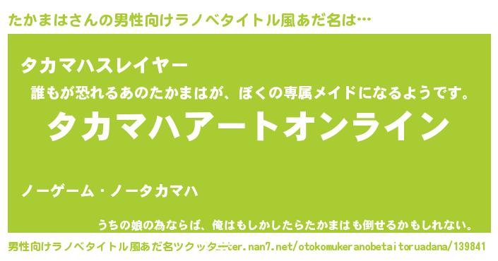 | 女子向けラノベタイトル風あだ名 | 『たかまは姫と円卓の騎士』 |