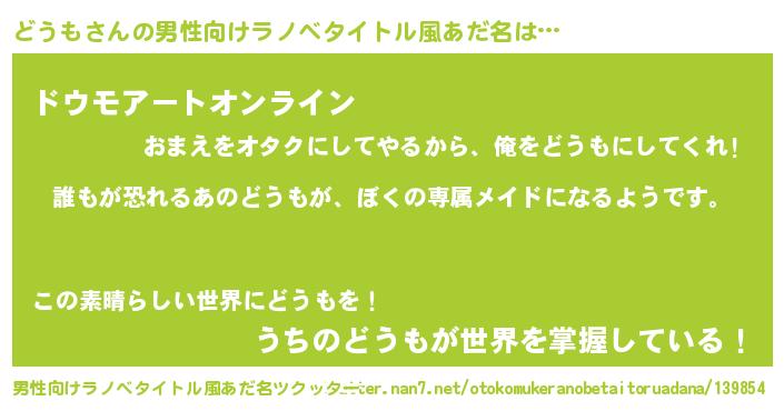 | 女子向けラノベタイトル風あだ名 | 『異世界でカフェどうもを開店しました。』 |