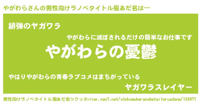 | 女子向けラノベタイトル風あだ名 | 『(仮)やがわらのやんごとなき事情』 |