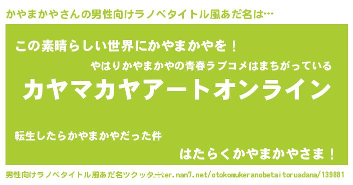 | 胡散臭い通販商品みたいなあだ名 | 『億万長者になれる水晶球…その名も「かやまかや」』 |