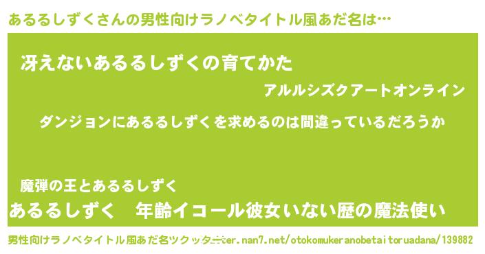 | 女子向けラノベタイトル風あだ名 | 『あるるしずくの卵を拾いまして』 |