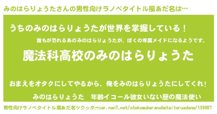 | 女子向けラノベタイトル風あだ名 | 『みのはらりょうたなんてお断りですっ。』 |