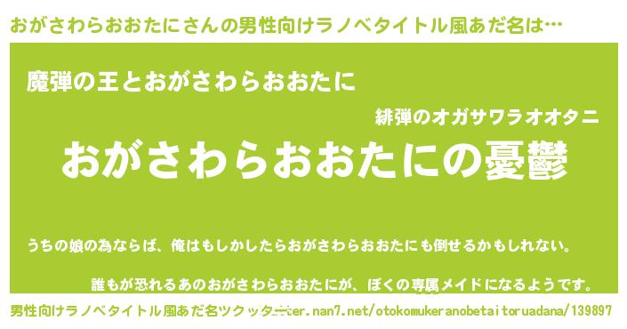 | 女子向けラノベタイトル風あだ名 | 『(仮)おがさわらおおたにのやんごとなき事情』 |