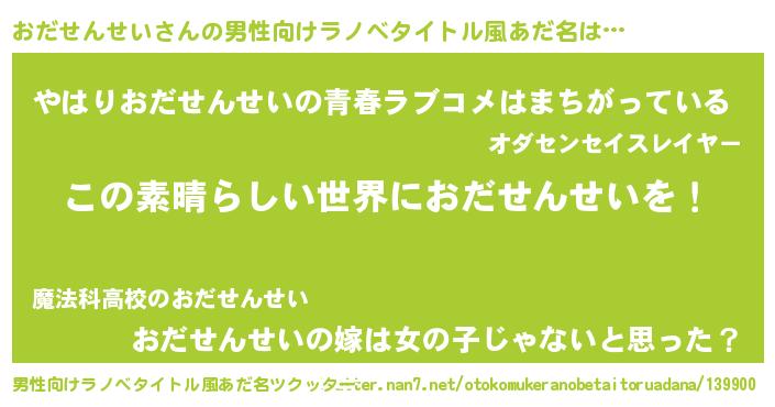 | 女子向けラノベタイトル風あだ名 | 『悪役おだせんせいに転生したようですが、知った事ではありません』 |