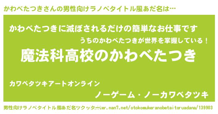 | 肩書あだ名 | 『かわべたつき閣下』『かわべたつき船長』 |