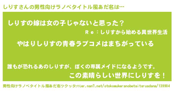 | 女子向けラノベタイトル風あだ名 | 『しりすの雑貨屋さん』 |