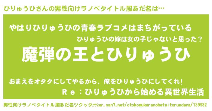 | 女子向けラノベタイトル風あだ名 | 『ひりゅうひが死なない童話 林檎のひりゅうひの診療簿』 |
