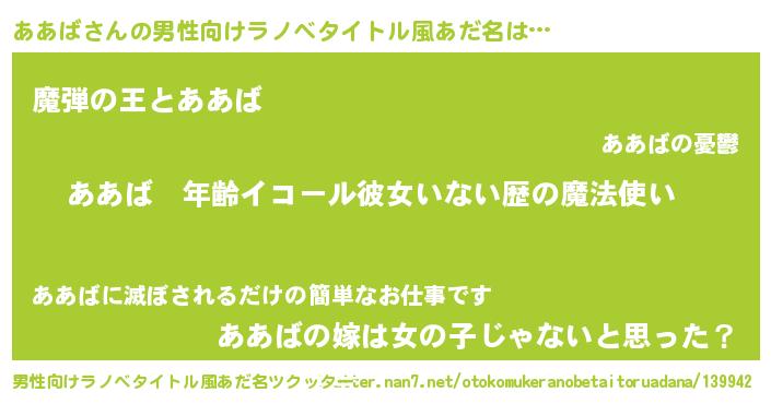| 胡散臭い通販商品みたいなあだ名 | 『あなたにだけ特別に提供する限定10本のレアな日本酒…その名も「ああば」』 |
