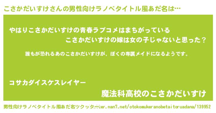 | ヘコむあだ名 | 『こさかだいすけ(笑)』『酢こんぶ』 |