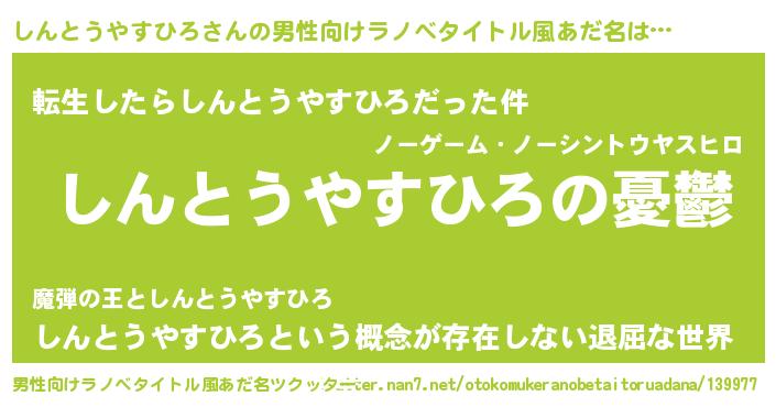 | ヒーロー風カッコイイあだ名 | 『スーパーシントウヤスヒロ』 |