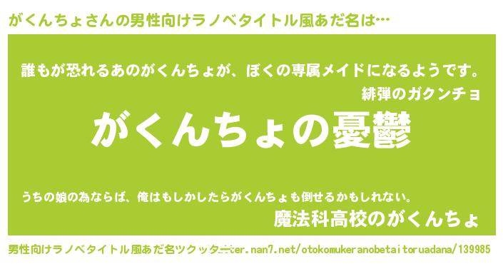 | 女子向けラノベタイトル風あだ名 | 『(仮)がくんちょのやんごとなき事情』 |